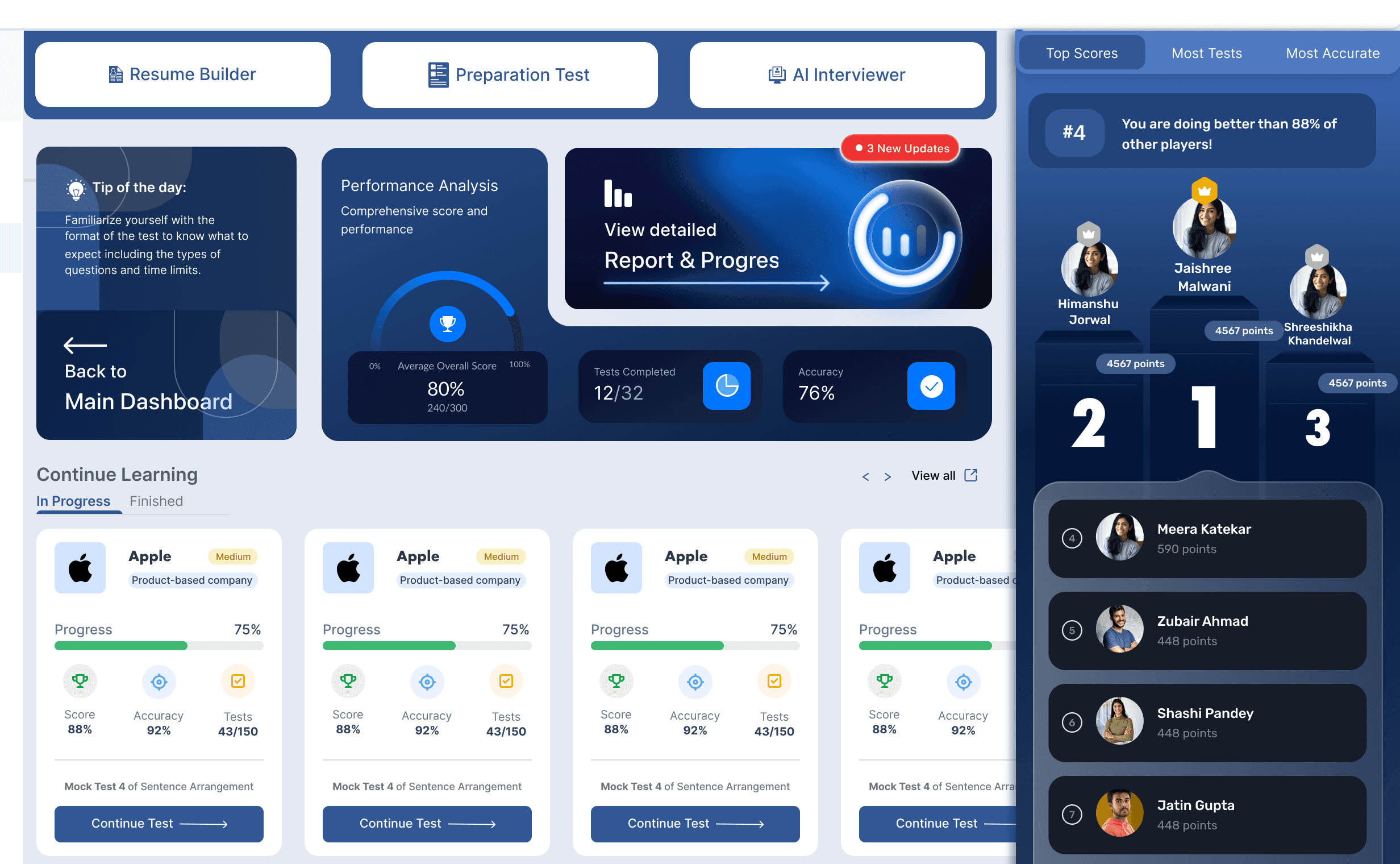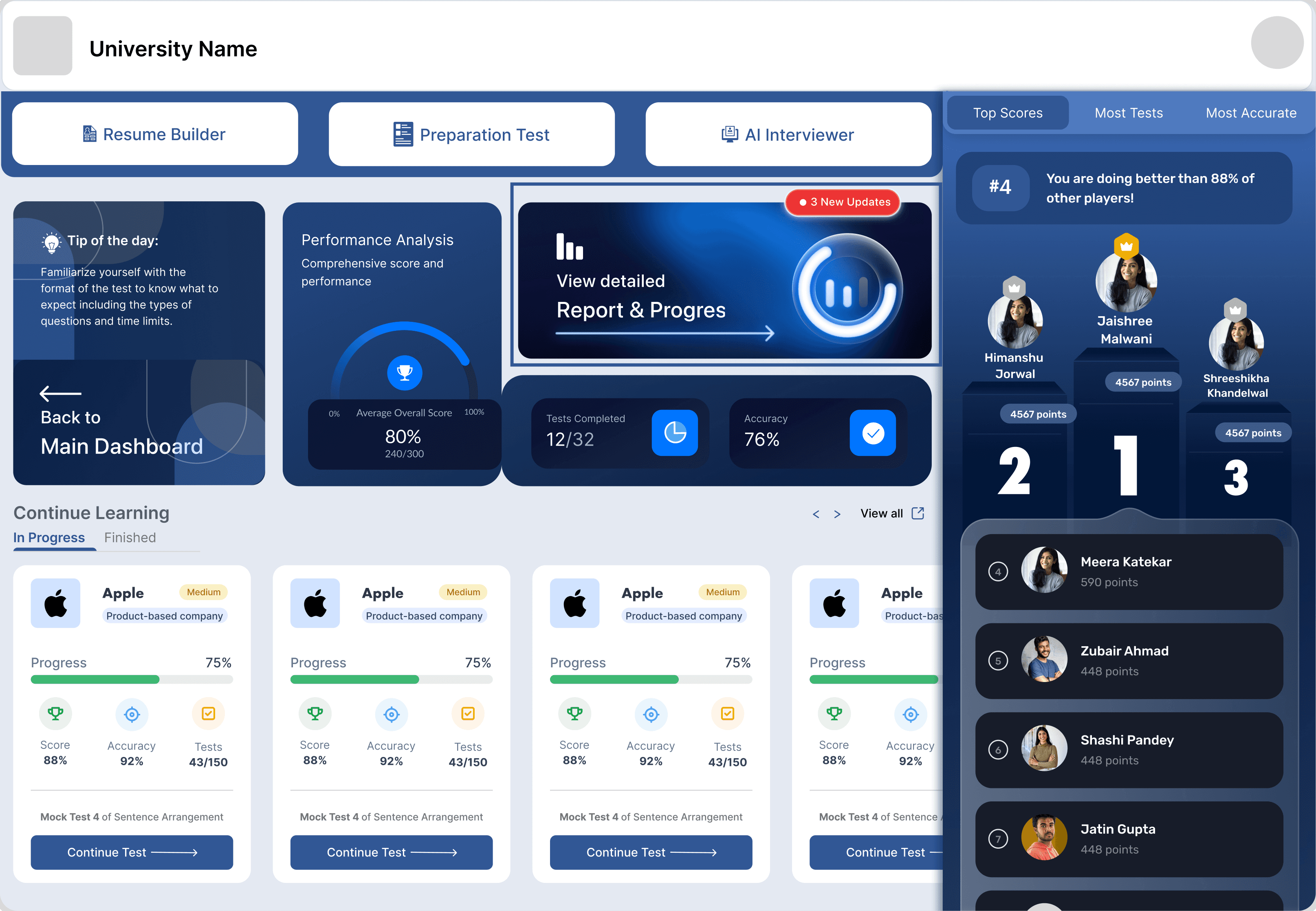 Placement Preparation Dashboard
