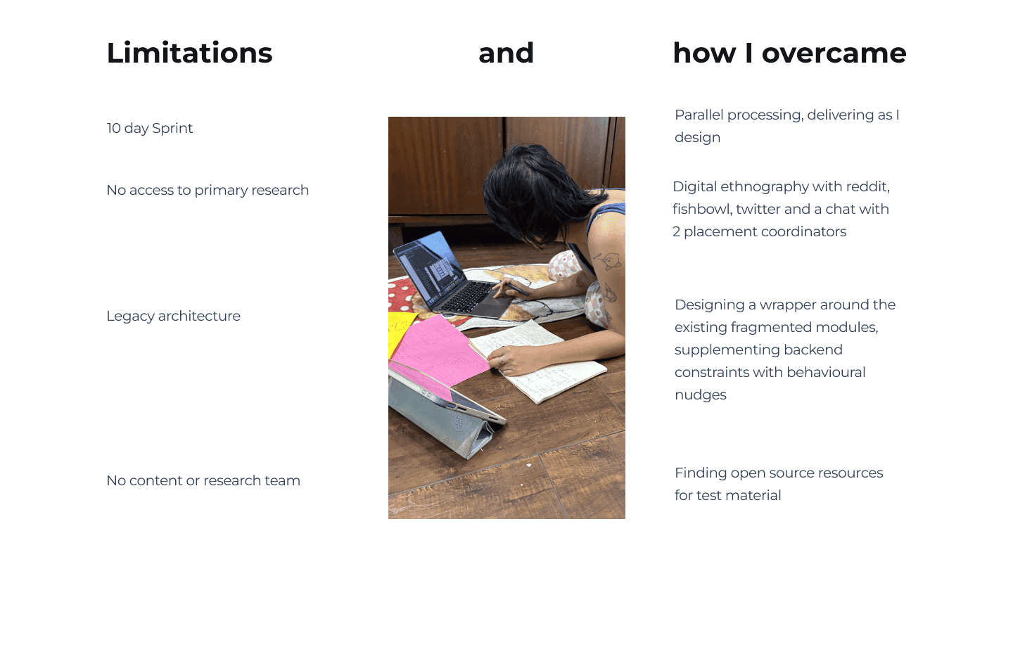 Consumed reddit, linkedin and fishbowl discussions to understands aspirants’ journey, talked to 2 placement coordinators